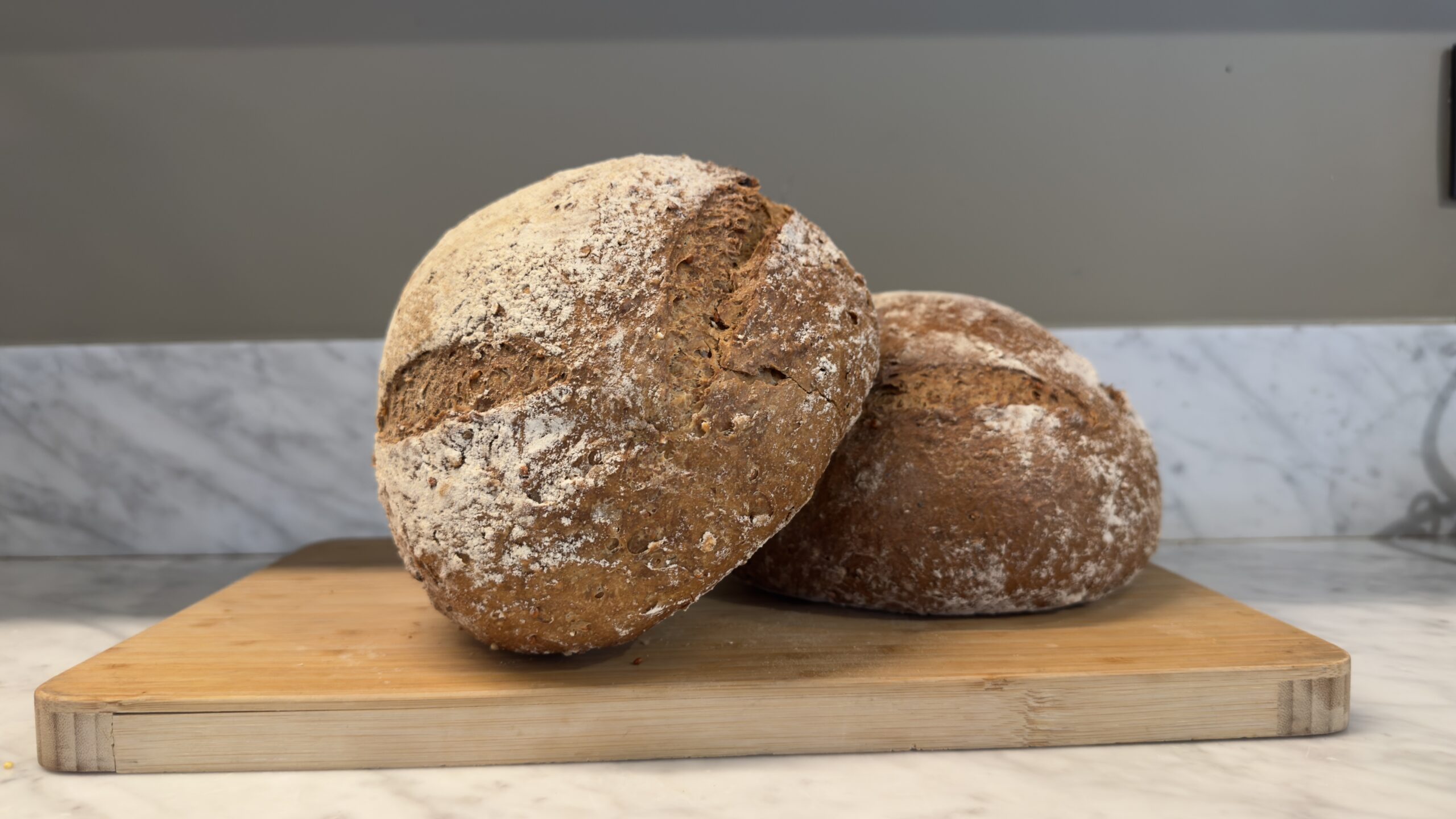 Ons Oogstbrood is een krokant bruin meergranenbrood met een voedzame, volle smaak. De mix van tarwe- en roggemeel wordt verrijkt met zonnebloempitten, pompoenpitten, gerstvlokken, gierst en boekweit, wat zorgt voor een heerlijke structuur en stevige beet. Ideaal als dagelijks brood, bij een salade of als luxueuze boterham met beleg.